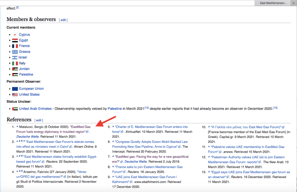 The East Mediterranean gas project is often described as an explosive geopolitical initiative that’s not without a number of hidden agendas (June 2019). WHY IT IS IMPORTANT: Shed light on importance of EastMed; reference on Wikipedia (see above – it is the first referenced article, the others were added later)